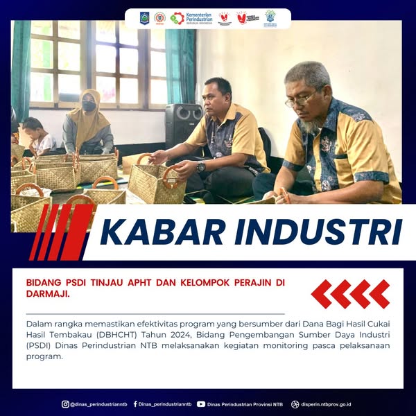 Dalam rangka memastikan efektivitas program yang bersumber dari Dana Bagi Hasil Cukai Hasil Tembakau (DBHCHT) Tahun 2024, Bidang Pengembangan Sumber Daya Industri (PSDI) Dinas Perindustrian NTB melaksanakan kegiatan monitoring pasca pelaksanaan program.