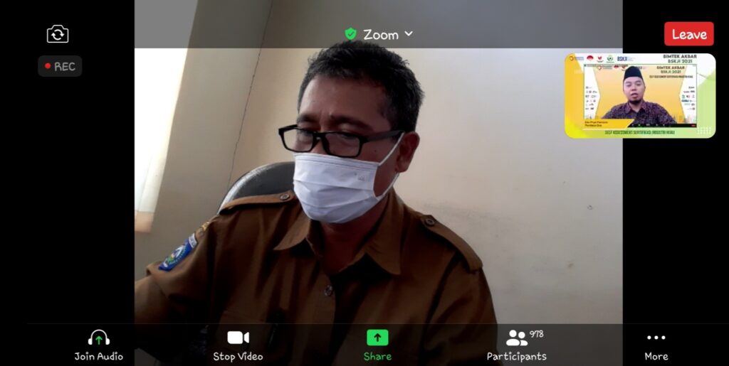 Mewakili Kadisperin Provinsi NTB, Kepala Bidang Sarana, Prasarana & Pemberdayaan Industri (Lalu Siswadi Handayani, SE., M.Pd) mengikuti kegiatan Bimtek Akbar Seri 3 “Self Assesment Sertifikasi Industri Hijau” yang diadakan oleh Kemntrian Perindustrian. (10/19/2021)