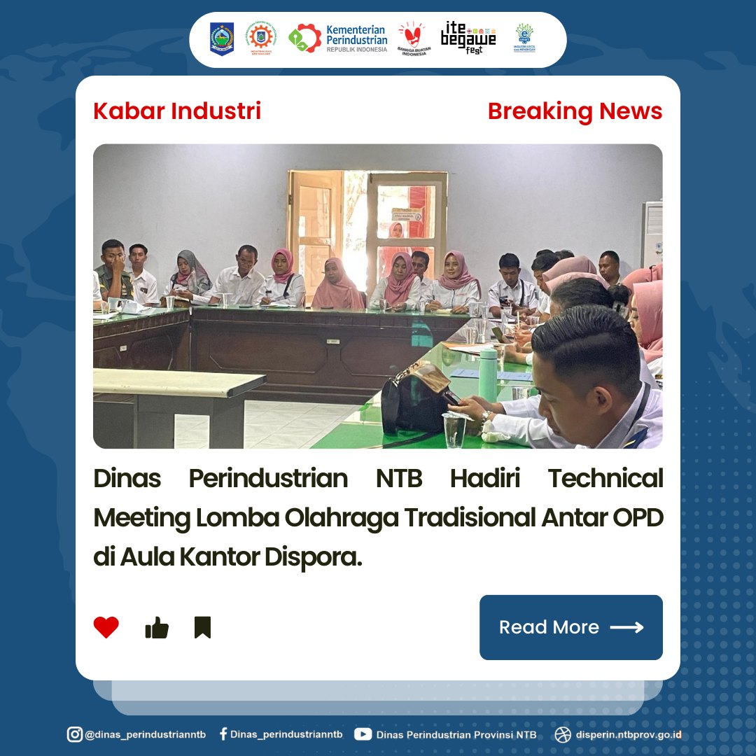 Pada Rabu, 14 Agustus 2024, Dinas Perindustrian Provinsi Nusa Tenggara Barat (NTB) turut berpartisipasi dalam Technical Meeting (TM) Lomba Olahraga Tradisional Antar Organisasi Perangkat Daerah (OPD) yang berlangsung di Aula Kantor Dinas Pemuda dan Olahraga (Dispora) Provinsi NTB. Pertemuan ini merupakan bagian dari rangkaian kegiatan menyambut Hari Ulang Tahun Republik Indonesia (HUT RI) yang ke-79.