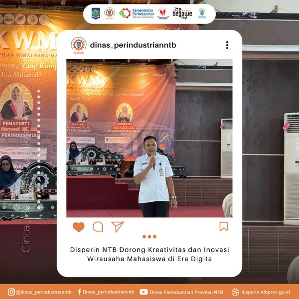 Mataram – Dinas Perindustrian NTB turut berperan aktif dalam mendorong pengembangan jiwa wirausaha di kalangan mahasiswa melalui partisipasi sebagai narasumber dalam kegiatan Seminar Latihan Keterampilan Wirausaha Mahasiswa (LKWM) yang diselenggarakan oleh Badan Eksekutif Mahasiswa (BEM) Universitas Mataram. Seminar yang bertajuk “Membentuk Jiwa Wirausaha yang Kompetitif, Kreatif, dan Inovatif di Era Milenial” ini berlangsung di Gedung Auditorium Universitas Mataram, menghadirkan peserta dari kalangan mahasiswa lintas jurusan, 9/10/24.