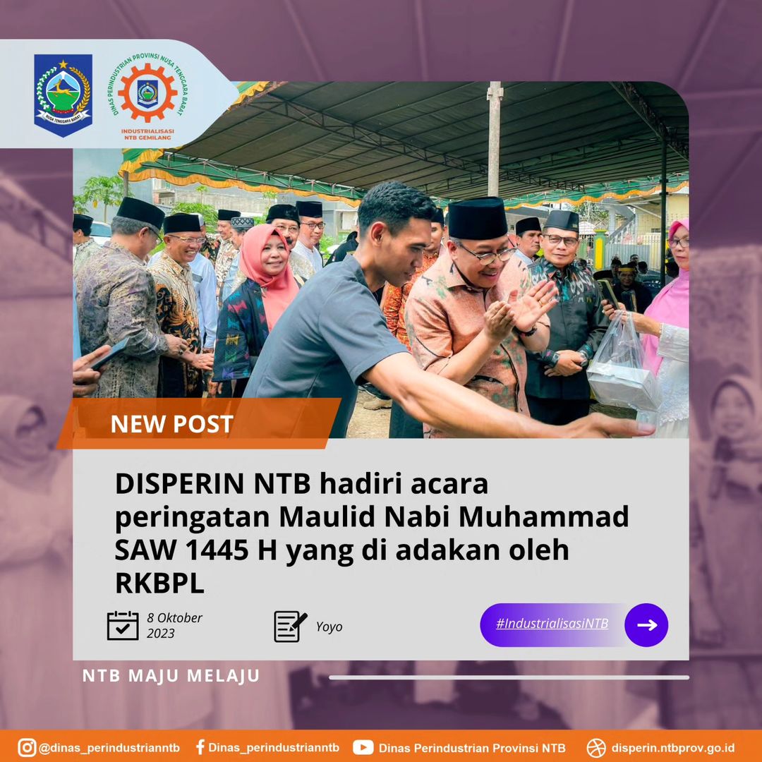 Kepala Dinas Perindustrian Provinsi NTB Nuryanti SE., ME. didampingi Sekretaris Disperin Dra. Sri Irianti, Kabid Kerjasama Arifin SH., MH, dan Pejabat Fungsional Ety hartati S.Si Menghadiri acara peringatan Maulid Nabi Muhammad SAW 1445 H yang di adakan oleh Rukun Keluarga Bima Pulau Lombok (RKBPL).