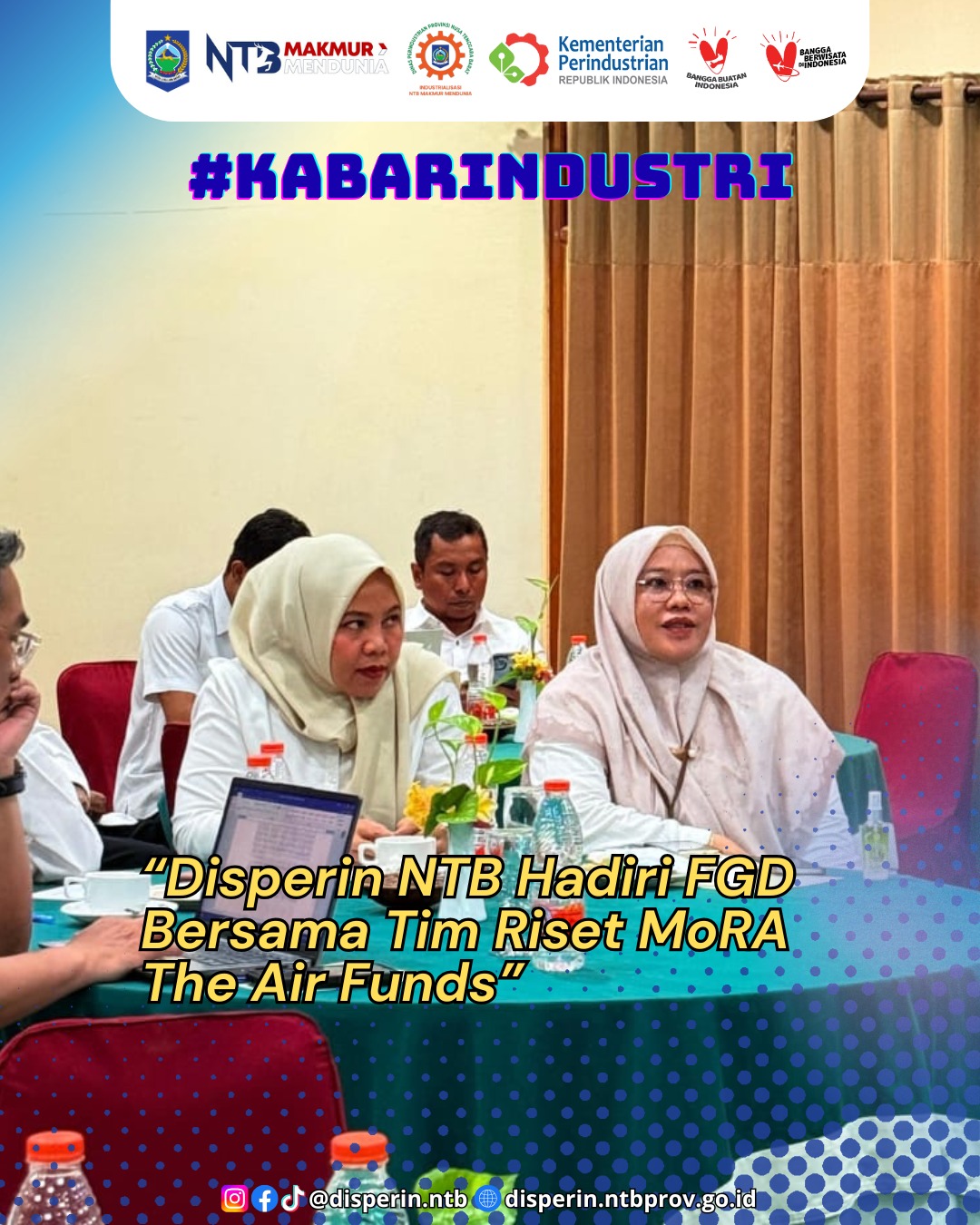 Mewakili Kadis Perindustrian NTB, Kepala Bidang Sarana Prasarana dan Pemberdayaan Industri Dinas Perindustrian Provinsi Nusa Tenggara Barat, DR. Hj. Aryanti Dwiyani,S,Pt.,M.PD., beserta tim menghadiri kegiatan Focus Group Discussion bersama Tim Riset MoRA The Air Funds yang berlangsung di Hotel Jayakarta NTB, Rabu, 10/9/2025