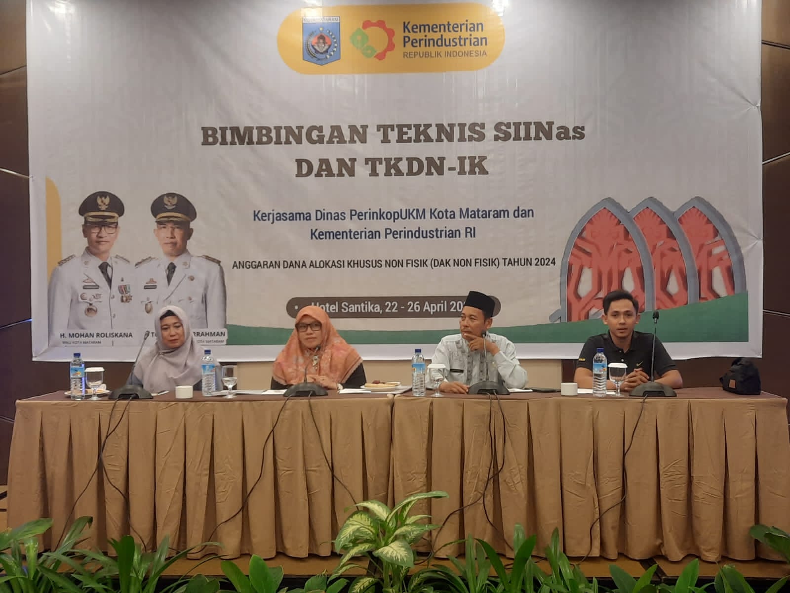 Jum’at, 26 April 2024. Berlangsung Kegiatan Bimbingan Teknis (Bimtek) SIINas dan TKDN-IK yang diselenggarakan oleh Dinas Perindustrian Koperasi dan UKM (PerinkopUKM) NTB, di Hotel Santika.