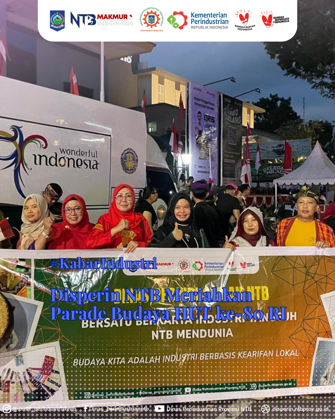 Dinas Perindustrian Provinsi NTB ikut ambil bagian dalam memeriahkan Parade Budaya sebagai wujud cinta tanah air dan penghargaan terhadap kearifan lokal.
