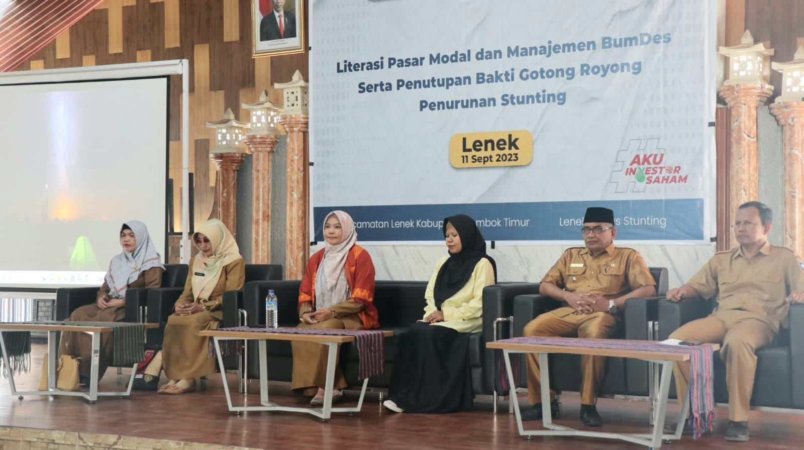 Dinas Perindustrian Provinsi NTB bekerjasama dengan BEI NTB menggelar kegiatan Literasi Pasar Modal dan Manajemen BUMDes serta penutupan Bakti Gotong Royong Penurunan Stunting yang berlokasi di Aula Antara Balai Pelatihan Vokasi dan Produktivitas Lombok Timur (BLK Lombok Timur). Kegiatan yang dihadiri oleh ±100 peserta yang terdiri dari IKM, Pengurus Bumdes, Perangkat Desa Se-Kec. Lenek serta stakeholder terkait. Turut hadir pula perwakilan dari PT. AMMAN, yang merupakan salah satu Donatur dalam program Gotong Royong Penurunan Angka Stunting di Kec. Lenek Lombok Timur (11/09/2023).