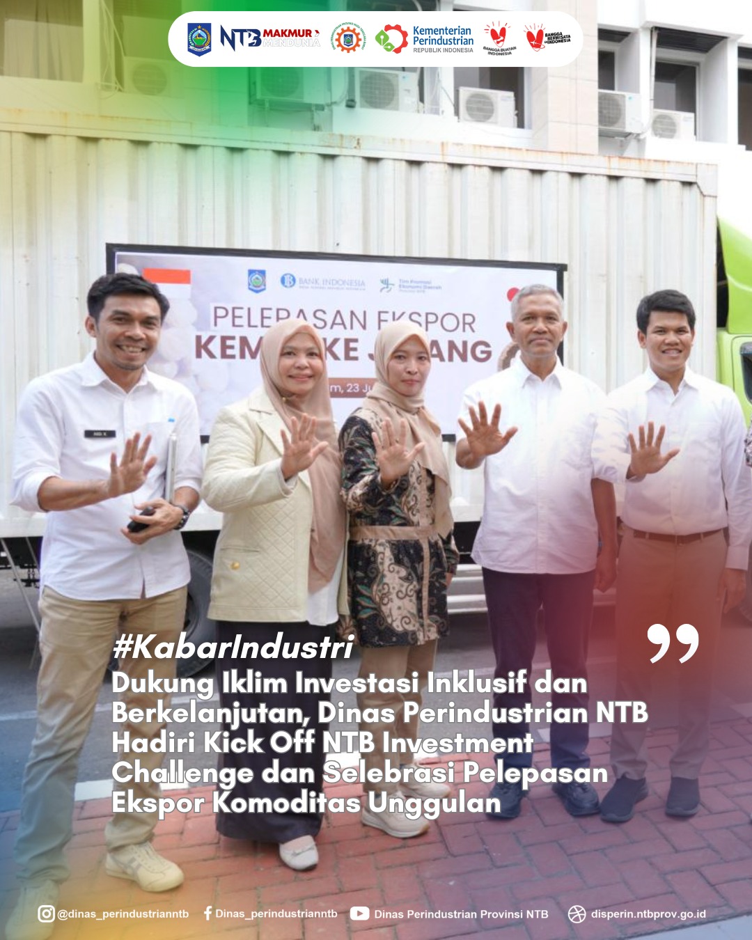 Kepala Dinas Perindustrian NTB, Hj. Nuryanti, SE., ME., dalam kesempatan tersebut menyatakan bahwa Dinas Perindustrian NTB akan terus mendukung langkah-langkah percepatan investasi dan ekspor berbasis sektor industri. Ia menekankan pentingnya hilirisasi komoditas unggulan, peningkatan daya saing IKM, serta penguatan ekosistem industri berbasis potensi lokal.