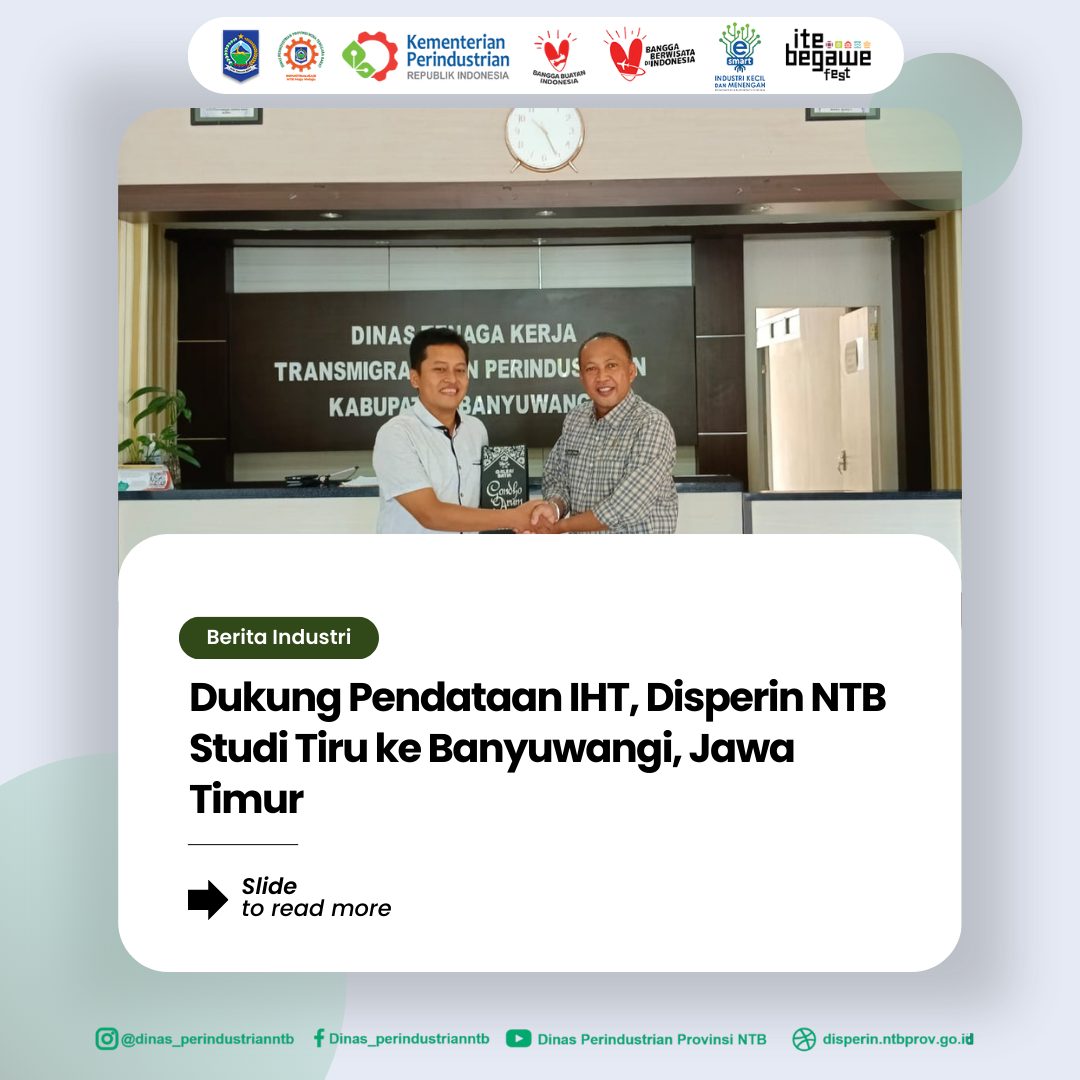 Studi tiru tersebut merupakan tindak lanjut dari program pendataan IHT yang dirancang untuk memperkuat pemetaan sektor industri strategis di berbagai wilayah di Indonesia. Hasil pendataan ini diharapkan dapat memberikan gambaran menyeluruh tentang kondisi IHT serta menjadi dasar pengambilan kebijakan yang tepat sasaran demi pengembangan IHT di NTB.