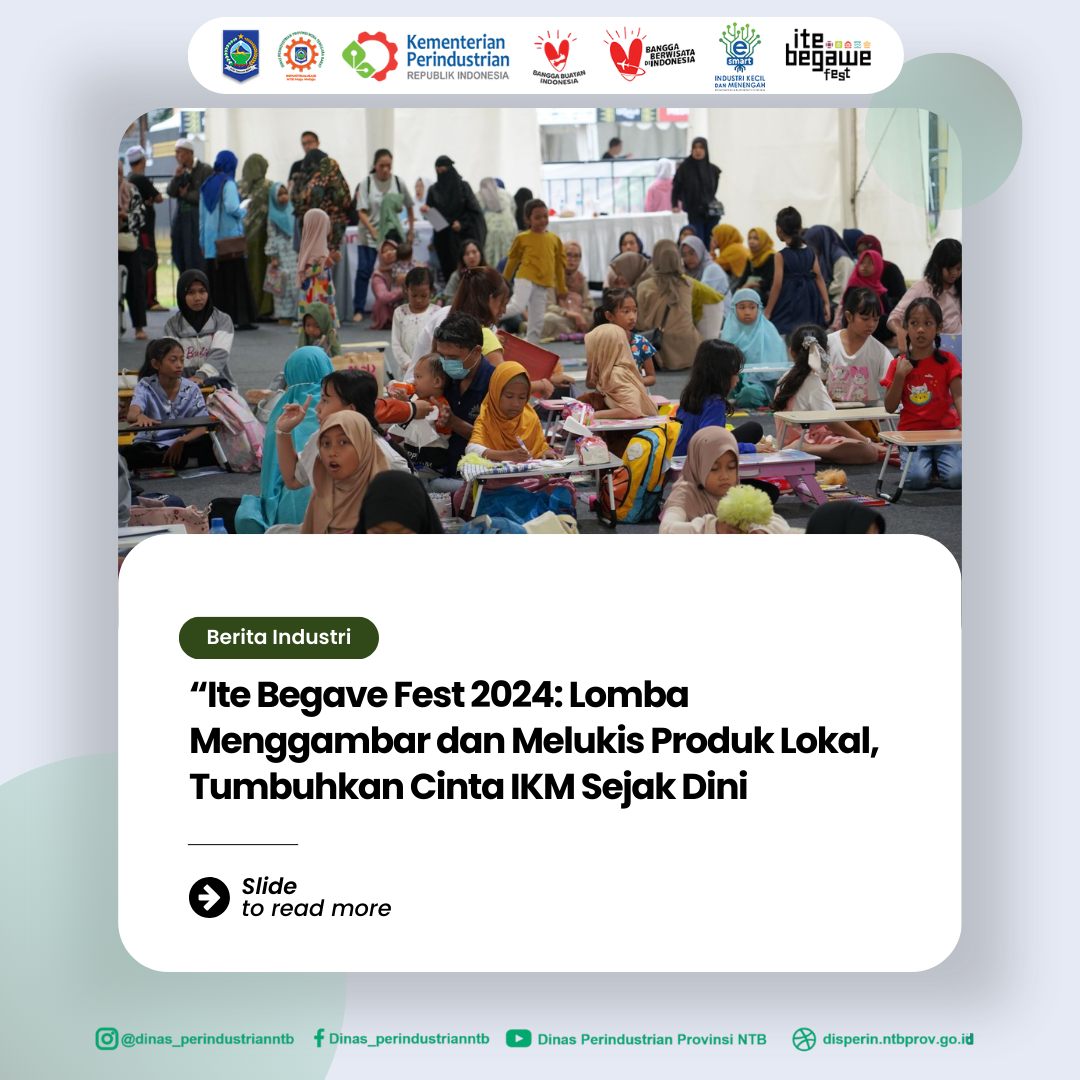 Mataram – Ite Begave Fest 2024, sebagai bagian dari Gerakan Nasional Bangga Buatan Indonesia (BBI), menggelar Lomba Menggambar dan Melukis Produk Lokal untuk tingkat TK dan SD dengan tema “Produk Lokal Hasil Industri Kecil Menengah (IKM) NTB”. Kegiatan yang berlangsung meriah ini diikuti oleh 200 peserta dari berbagai sekolah di NTB.