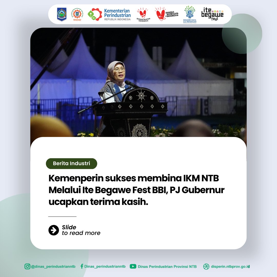 Direktur Jenderal Industri Kecil, Menengah, dan Aneka (IKMA) Kementerian Perindustrian Ir. Reni Yanita, M.Si dalam sambutannya menyampaikan bahwa Ite Begawe Fest bukan sekadar perayaan. Tetapi juga langkah konkret Kemenperin dalam mempromosikan dan memberdayakan produk-produk lokal berkualitas.