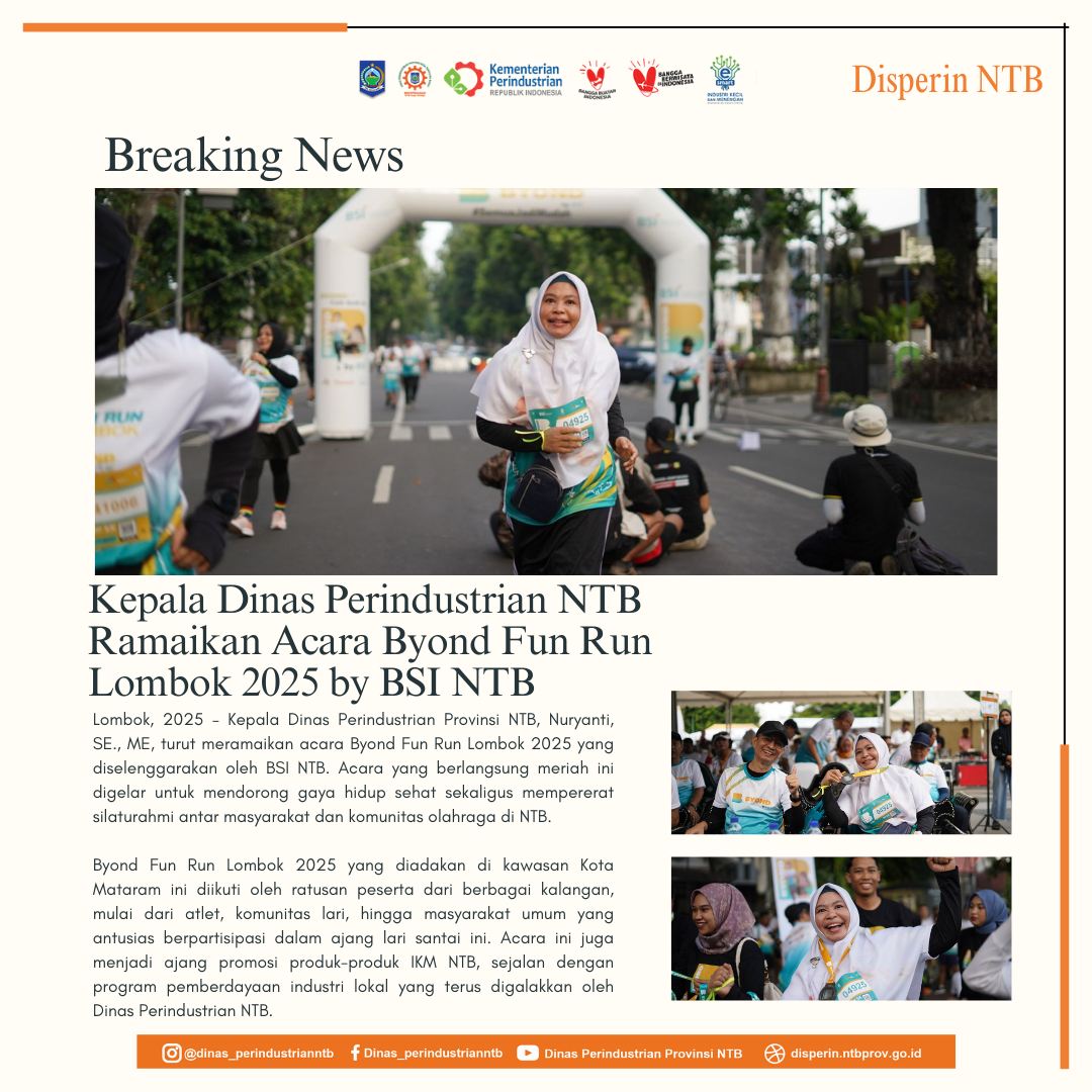 Byond Fun Run Lombok 2025 yang diadakan di kawasan Kota Mataram ini diikuti oleh ratusan peserta dari berbagai kalangan, mulai dari atlet, komunitas lari, hingga masyarakat umum yang antusias berpartisipasi dalam ajang lari santai ini. Acara ini juga menjadi ajang promosi produk-produk IKM NTB, sejalan dengan program pemberdayaan industri lokal yang terus digalakkan oleh Dinas Perindustrian NTB.