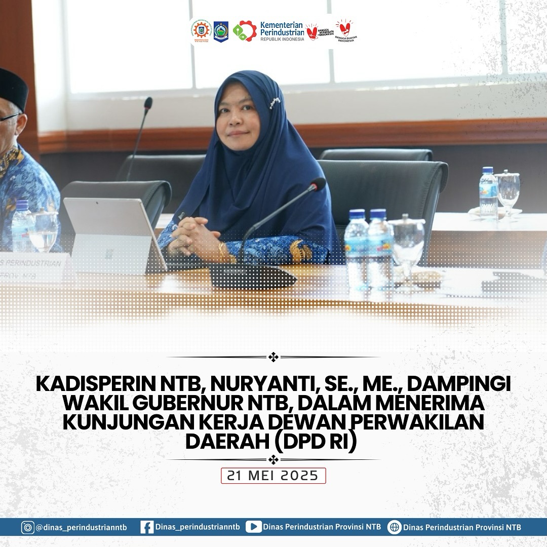 Kepala Dinas Perindustrian Provinsi Nusa Tenggara Barat, Nuryanti, SE., ME., mendampingi Wakil Gubernur NTB, Indah Dhamayanti Putri, SE., M.IP., dalam menerima kunjungan kerja Dewan Perwakilan Daerah (DPD) Republik Indonesia di Ruang Rapat Tambora, Kantor Gubernur NTB, Selasa (20/05/2025). Kunjungan ini menjadi momentum strategis untuk memperkuat sinergi antara pusat dan daerah dalam mendorong NTB menuju panggung nasional dan internasional.