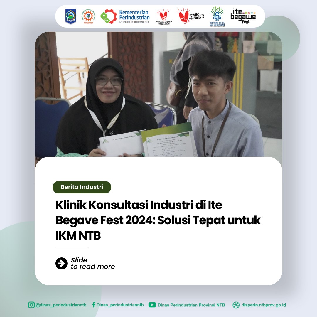 Mataram – Ite Begave Fest 2024, bagian dari Gerakan Nasional Bangga Buatan Indonesia (BBI), kembali menghadirkan program unggulan berupa Klinik Konsultasi Industri yang dirancang khusus untuk mendukung pelaku Industri Kecil dan Menengah se-NTB, yang berlokasi di dalam Gedung NTB Mall (Lt.2).