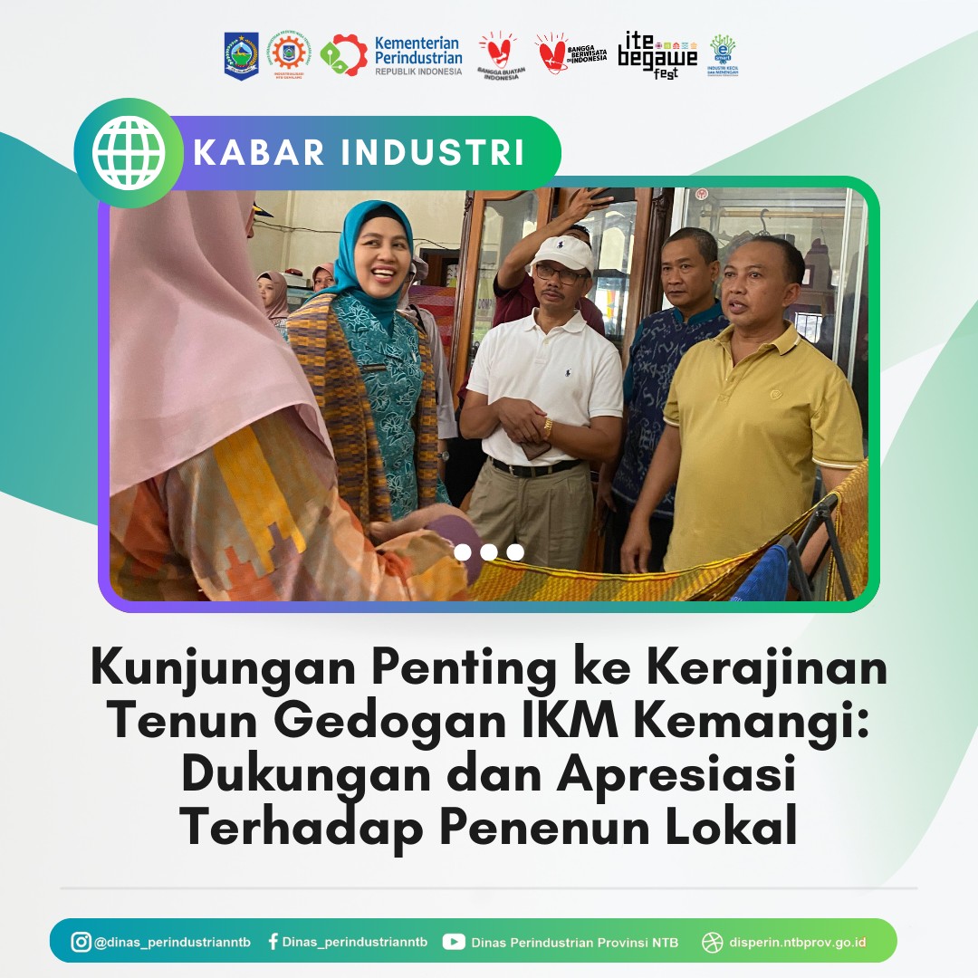 Kunjungan ini disambut hangat oleh Sekretaris Dinas Perindustrian NTB dan Kepala Dinas Perindag Kabupaten Dompu di lokasi acara. Ibu PJ Ketua PKK NTB, Ibu Ketua Persit Kartika Candra Kirana, dan Ibu Ketua PKK Dompu disambut dengan pengalungan selendang oleh Ibu Sumiati, Ketua Kerajinan Tenun Gedogan IKM Kemangi.