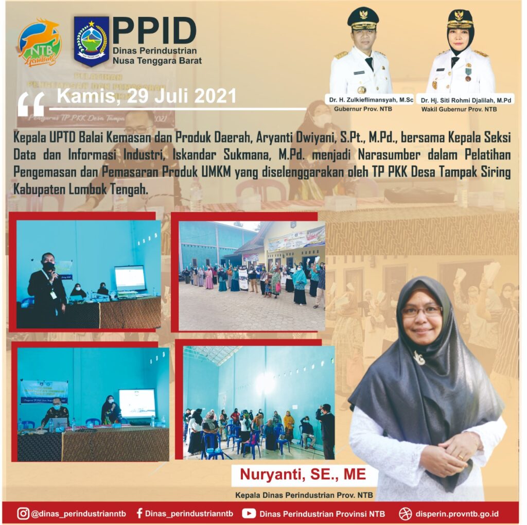 Memperkuat paradigma tersebut, Kepala Balai Kemasan, Aryanti Dwiyani, S.Pt., M.Pd, dan Kasi Data Dan Informasi Disperin NTB, Iskandar, S.Pd., M.Pd menghadiri pertemuan bersama TP PKK Kab. Loteng, membahas sinergitas dan peluang usaha perempuan NTB di sektor industri, Kamis, 30 Juli 2021.