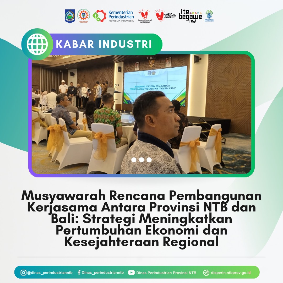 Lombok Tengah, 31 Juli 2024 – Musyawarah Rencana Pembangunan Kerjasama antar Provinsi Nusa Tenggara Barat (NTB) dan Provinsi Bali berlangsung sukses di Pullman Lombok Mandlika Beach Resort, ITDC Mandalika Tourism Complex, Kuta. Acara yang dihadiri oleh berbagai pihak, termasuk Perencana Muda Dinas Perindustrian Provinsi NTB, Asep Kurniawan S.Pt, ini bertujuan untuk mempererat kerjasama dan sinergitas antara kedua provinsi dalam memacu pertumbuhan ekonomi regional, meningkatkan ketahanan nasional, dan kesejahteraan masyarakat.