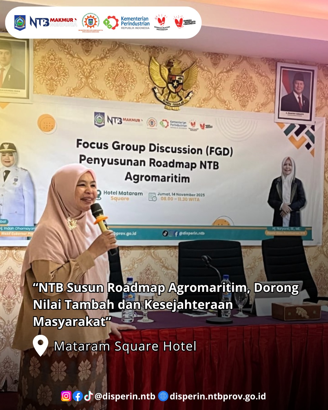 MATARAM – Dinas Perindustrian Provinsi Nusa Tenggara Barat (NTB) menyelenggarakan Focus Group Discussion (FGD) penting dalam rangka penyusunan Roadmap NTB Agromaritim. Kegiatan ini berlangsung pada Jumat, 14 November 2025, bertempat di Mataram Square Hotel.