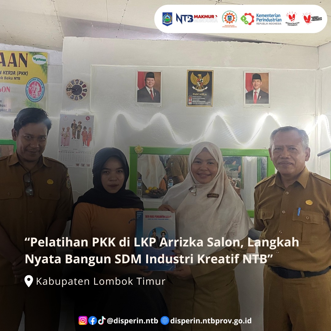 Lombok Timur, 13 Oktober 2025 – Kepala Dinas Perindustrian Provinsi Nusa Tenggara Barat, Hj. Nuryanti, S.E., M.E., didampingi tim Disperin NTB, menghadiri sekaligus membuka secara resmi Pelatihan Program Pendidikan Kecakapan Kerja (PKK) pada Lembaga Kursus dan Pelatihan (LKP) Arrizka Salon yang berlokasi di Kabupaten Lombok Timur.