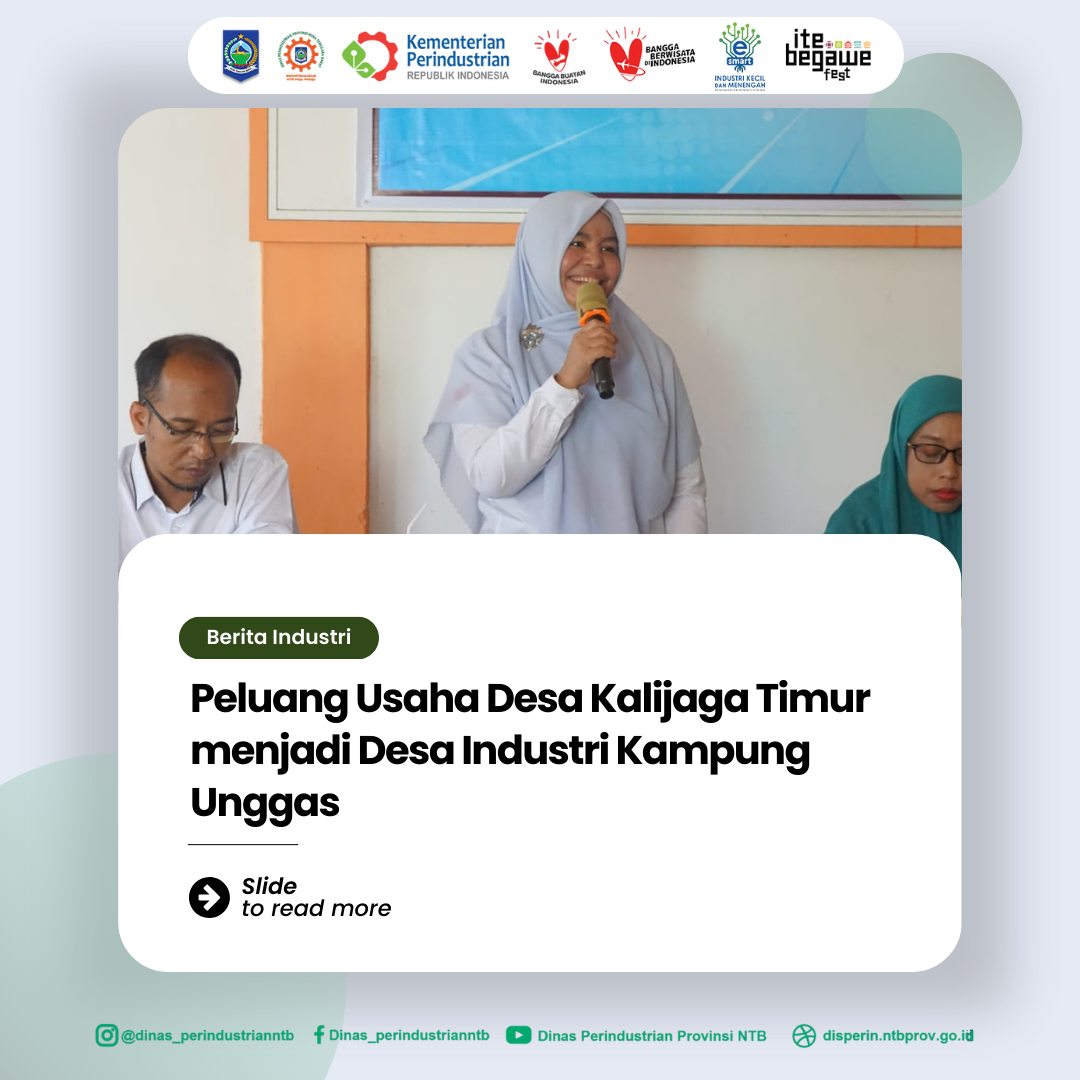 Rabu, 20 November 2024- Kepala Dinas Perindustrian Provinsi NTB disambut hangat dan antusias Kepala Desa Kalijaga Timur, Aikmel, Lombok Timur dalam rangka sebagai narasumber pada Pelatihan Kewirausahaan dan Pengemasan Produk .