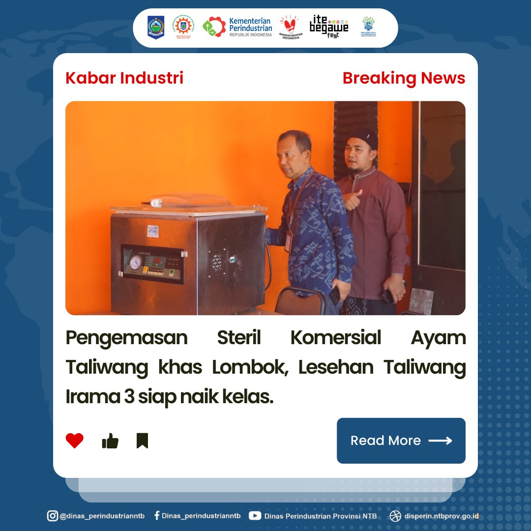 Dalam rangka pembinaan dan pengembangan IKM di Nusa Tenggara Barat, Kepala Balai Kemasan Produk Daerah Dinas Perindustrian Provinsi NTB Drs. Agus Supriyanto, Apt Bersama Kasi Diklat dan Promosi Heldy Sardianto, ST mengunjungi Lesehan Taliwang Irama di Jl. Ade Irma Suryani No.10, Karang Taliwang, Kec. Cakranegara, Kota Mataram pada 8 Agustus 2024.