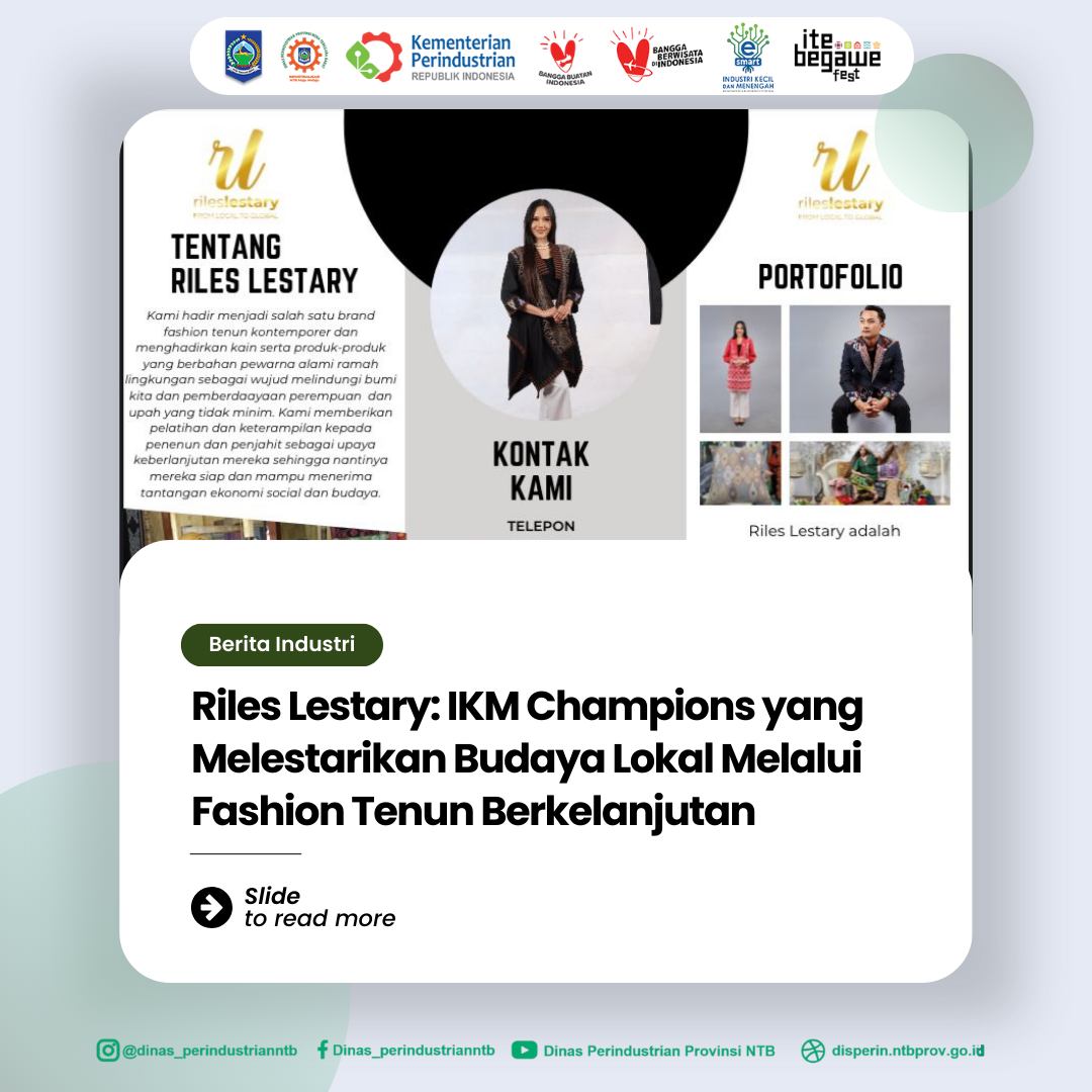 Berdiri pada 9 September 2021, di tengah masa pandemi Covid-19, Riles Lestary lahir dari kecintaan mendalam terhadap keindahan dan kekayaan kain tenun NTB. Mengusung bahan pewarna alami yang ramah lingkungan, brand ini tidak hanya menjaga warisan budaya, tetapi juga berkontribusi terhadap perlindungan bumi. “Nama saya, ‘Lestari’, adalah sebuah janji untuk melestarikan tenun ini hingga generasi mendatang,” ujar pendiri Riles Lestary.