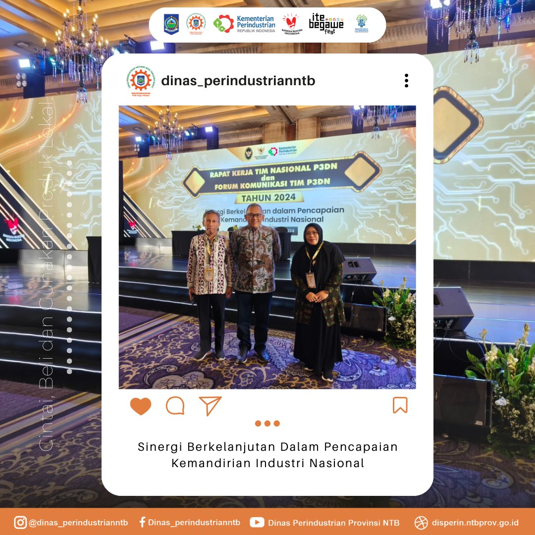 Jakarta – Mewakili Kepala Dinas Perindustrian Provinsi NTB, Kabid Sarana dan Prasarana, Dr. Aryanti Dwiyani, S.Pt, M.Pd, bersama tim menghadiri kegiatan Rapat Kerja Nasional (Rakernas) Peningkatan Penggunaan Produk Dalam Negeri (P3DN) serta Forum Komunikasi Tim P3DN. Kegiatan yang diselenggarakan di Kempinski Grand Ballroom, Jakarta Pusat ini bertujuan untuk meningkatkan sinergi antara Tim Nasional P3DN dan Tim P3DN Pemerintah Daerah dalam melaksanakan Keputusan Presiden Nomor 24 Tahun 2018, Rabu 9/10/24.