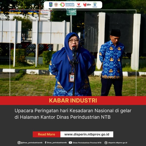 Kamis, 17 April 2025 — Dinas Perindustrian Provinsi Nusa Tenggara Barat menggelar Upacara Peringatan Hari Kesadaran Nasional di halaman kantor dinas. Upacara yang berlangsung khidmat ini dipimpin langsung oleh Kepala Bidang Sarana dan Prasarana serta Pemberdayaan Industri, Dr. Aryani Dwiyani, M.Pd, mewakili Kepala Dinas Perindustrian NTB.